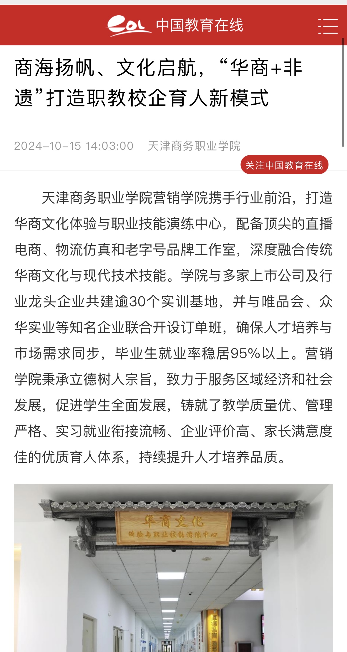 媒體關注 | 【中國教育在線】商海揚帆、文化啟航,“華商+非遺”打造職教校企育人新模式