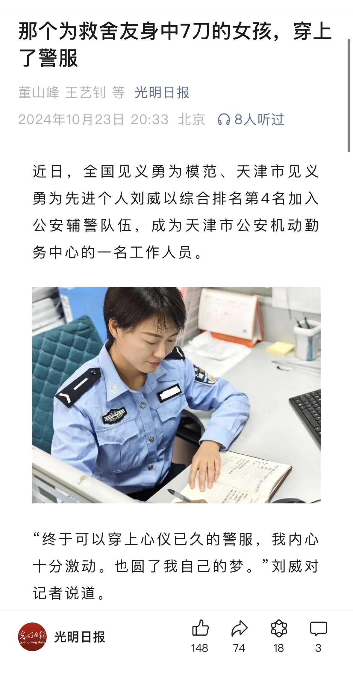 媒體關注 | 【光明日報】那個為救舍友身中7刀的女孩,穿上了警服