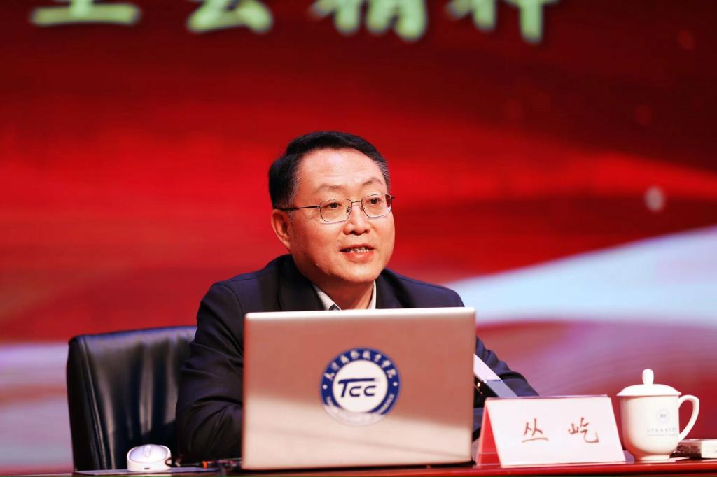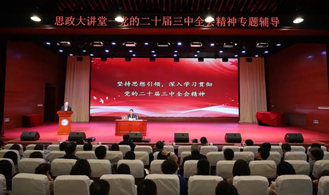 10月25日下午,學習貫徹黨的二十屆三中全會精神專題輔導在天津商務職業學院舉行。天津市委黨校(天津行政學院)副校長(副院長)、校(院)務委員會委員叢屹作專題輔導。學校黨委書記馬雷主持,校院兩級理論學習中心組成員、全體思政課教師等百余人參加。