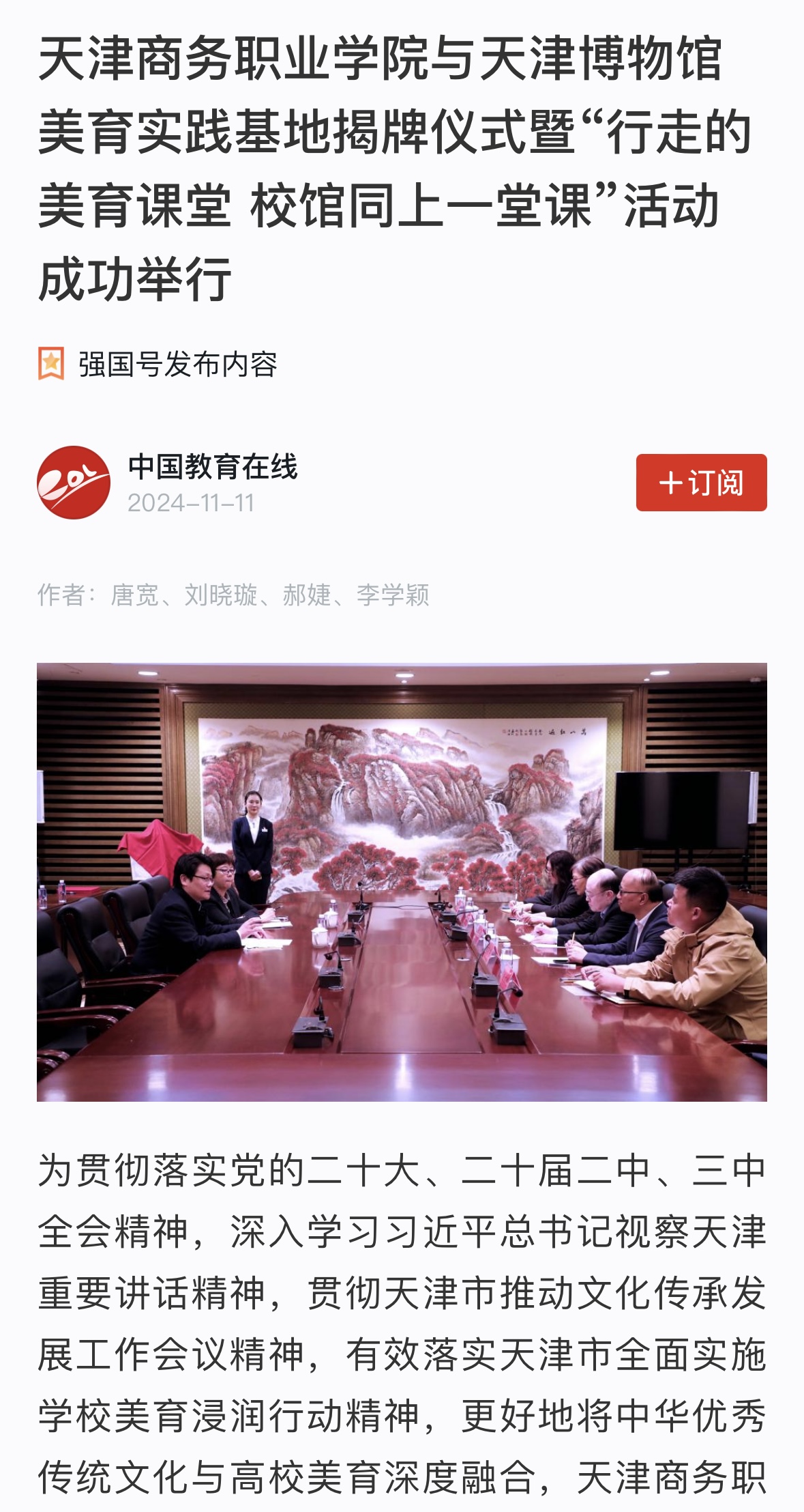 媒體關(guān)注 | 【學(xué)習(xí)強(qiáng)國】天津商務(wù)職業(yè)學(xué)院與天津博物館美育實(shí)踐基地揭牌儀式暨“行走的美育課堂 校館同上一堂課”活動(dòng)成功舉行