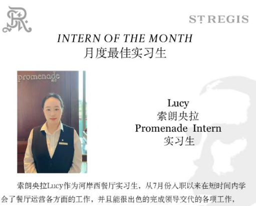 (萬豪酒店產(chǎn)業(yè)集團(tuán)實習(xí)生索朗央拉獲得月度最佳實習(xí)生)