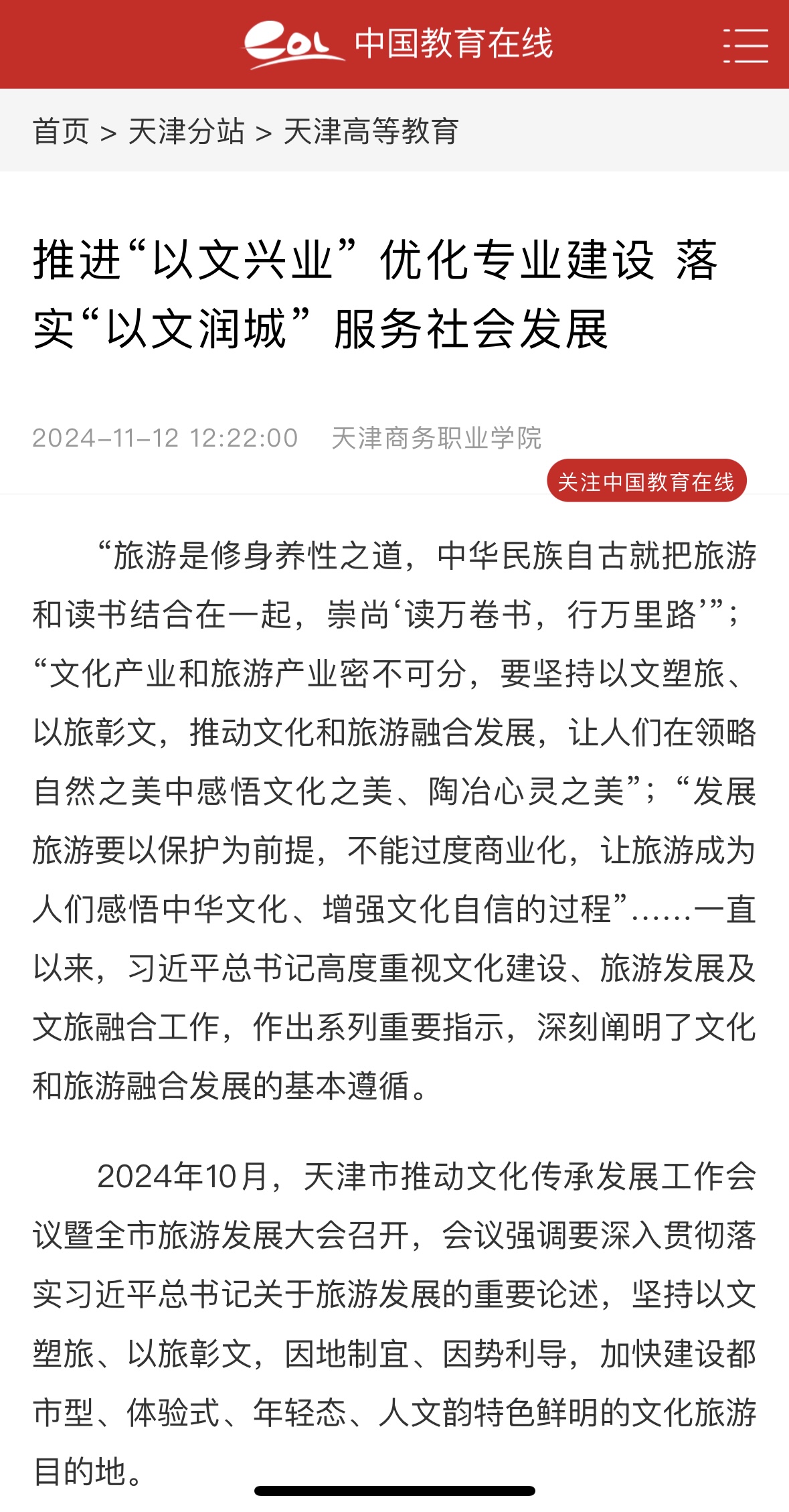 媒體關(guān)注 | 【中國教育在線】推進(jìn)“以文興業(yè)” 優(yōu)化專業(yè)建設(shè) 落實“以文潤城” 服務(wù)社會發(fā)展