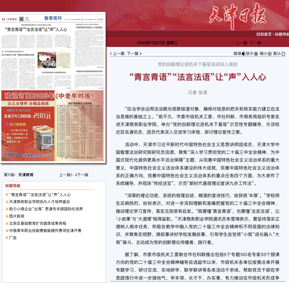 媒體關注 | 【天津日報】黨的創新理論進機關下基層活動深入高校 “青言青語”“法言法語”讓“聲”入人心
