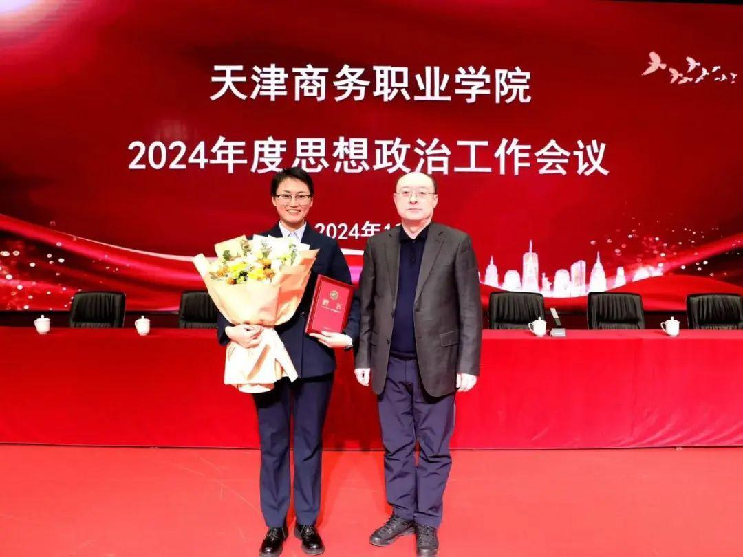 此次會議主題為“聚焦‘大思政課’示范校建設 加快推進學校高質量發展”。通過視頻回顧2024年學校思政育人成果,天津商務職業學院馬克思主義學院教師鄧新星、體育教學部教師田徑圍繞探索“思政課+微電影”新模式、以“體”載“育”加強民族傳統體育教育等教學實踐,分別進行思政育人、體育育人成果展示與分享。會議邀請第十四屆“全國見義勇為模范”、天津市公安輔警、天津商務職業學院會計學院2017屆優秀畢業生劉威重回校園進行宣講,并受聘擔任學校兼職思政課教師。學校黨委書記馬雷為劉威現場頒發聘書。
