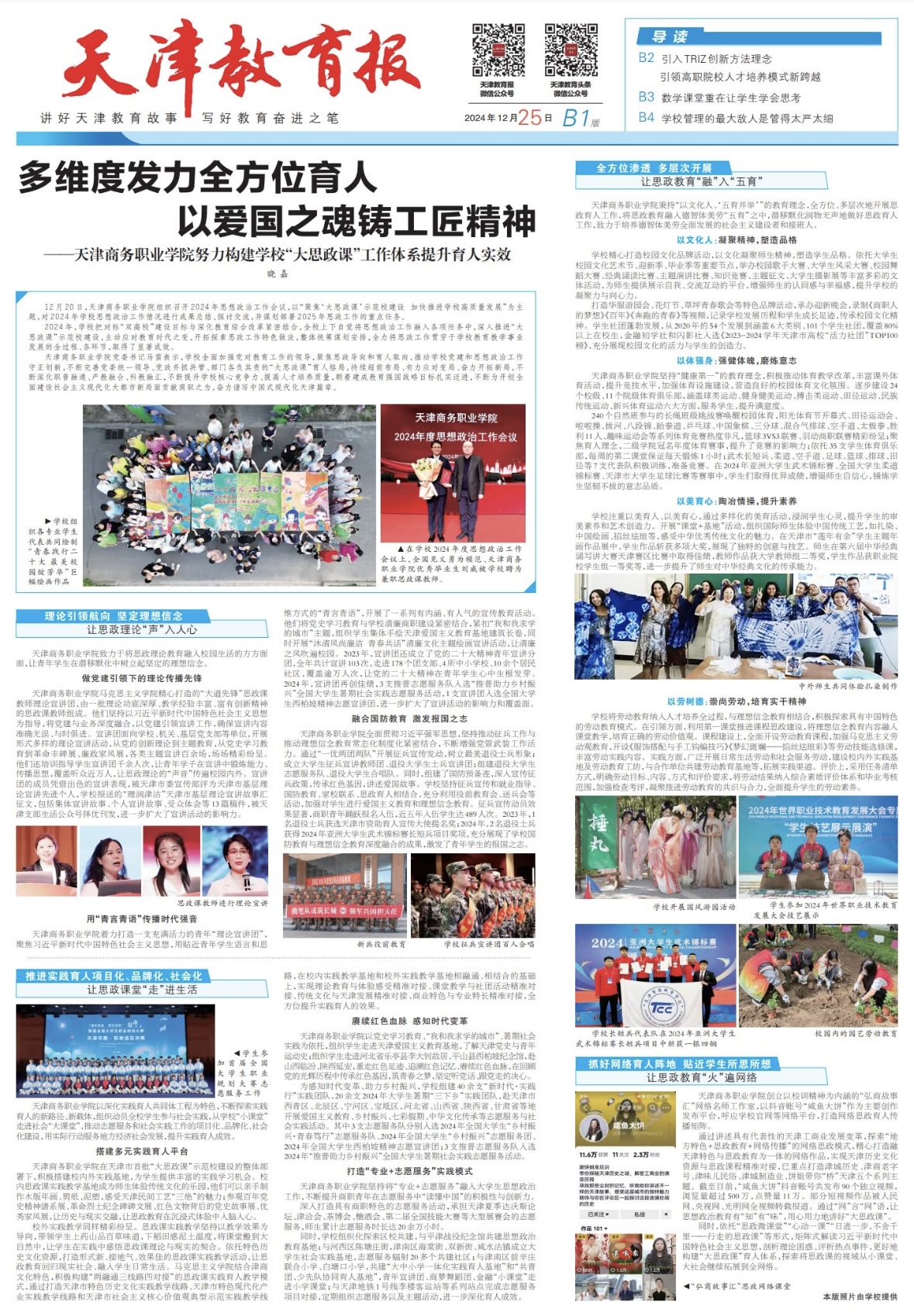 媒體關注 | 【天津教育報】專版報道我校多維度發力全方位育人 以愛國之魂鑄工匠精神 努力構建學校“大思政課”工作體系提升育人實效