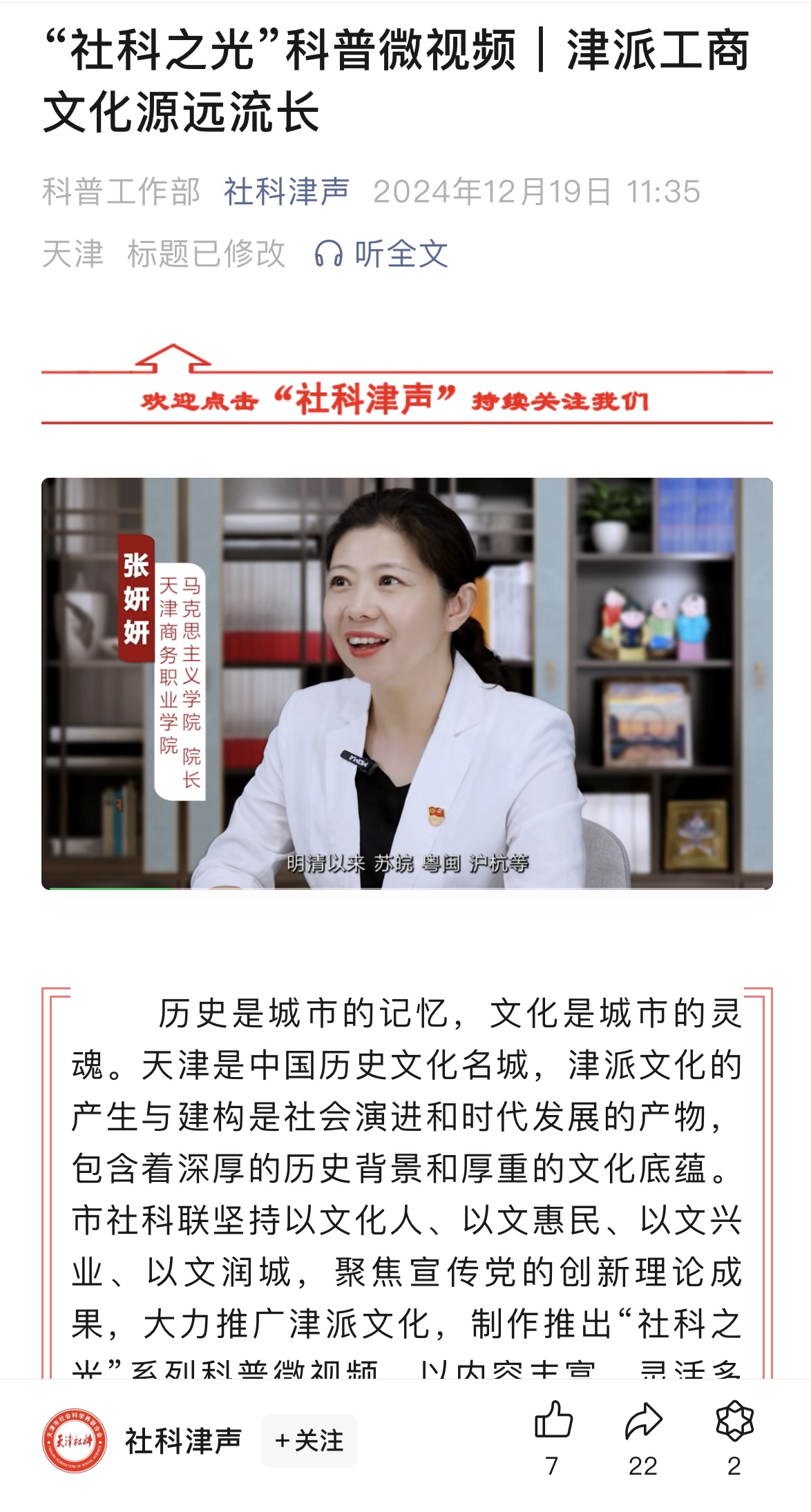 媒體關注 | 【社科津聲】“社科之光”科普微視頻|津派工商文化源遠流長