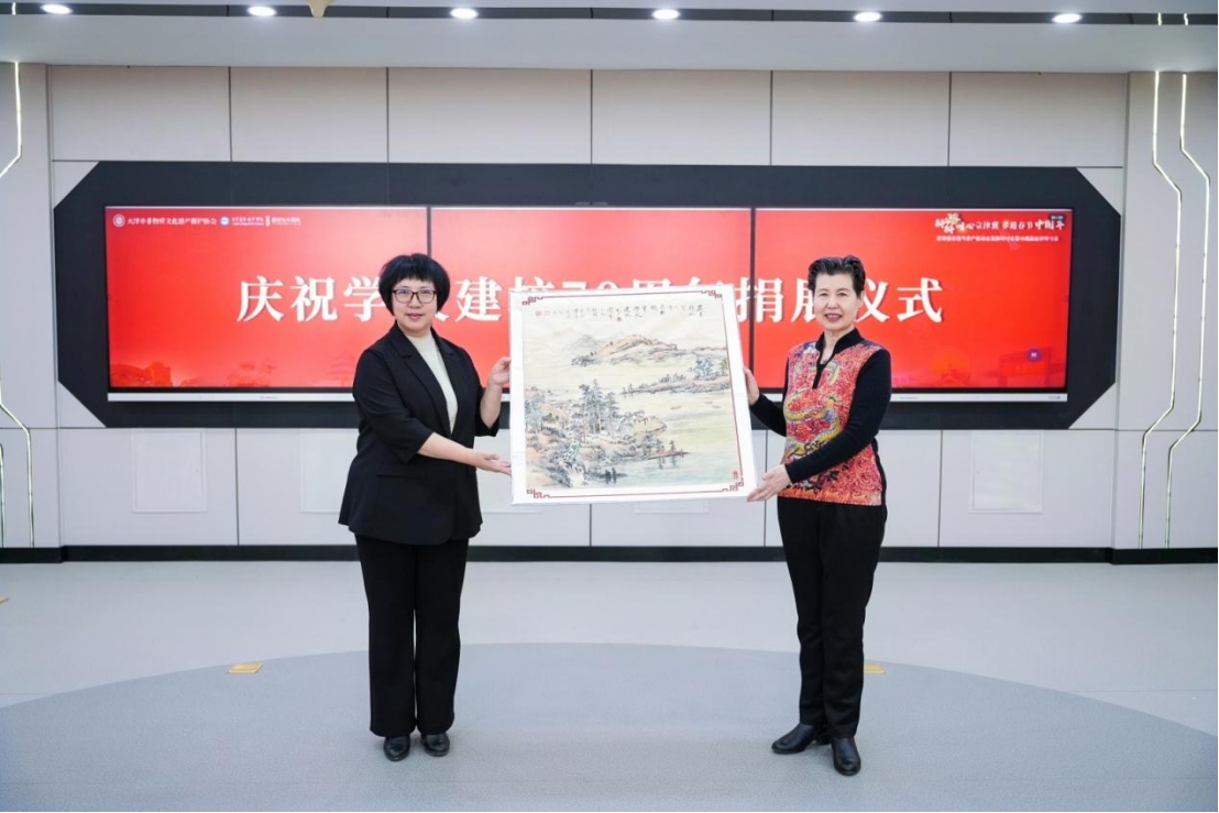 2025年正逢天津商務(wù)職業(yè)學院建校70周年,非遺工坊共建單位古鼎世家(天津)珠寶有限公司、國家級非遺項目(蔚縣剪紙)代表性傳承人、天津市級非遺唐氏郵票畫傳承人及學校退休老領(lǐng)導(dǎo)為學校捐展珍品佳作,祝福學校再創(chuàng)輝煌。