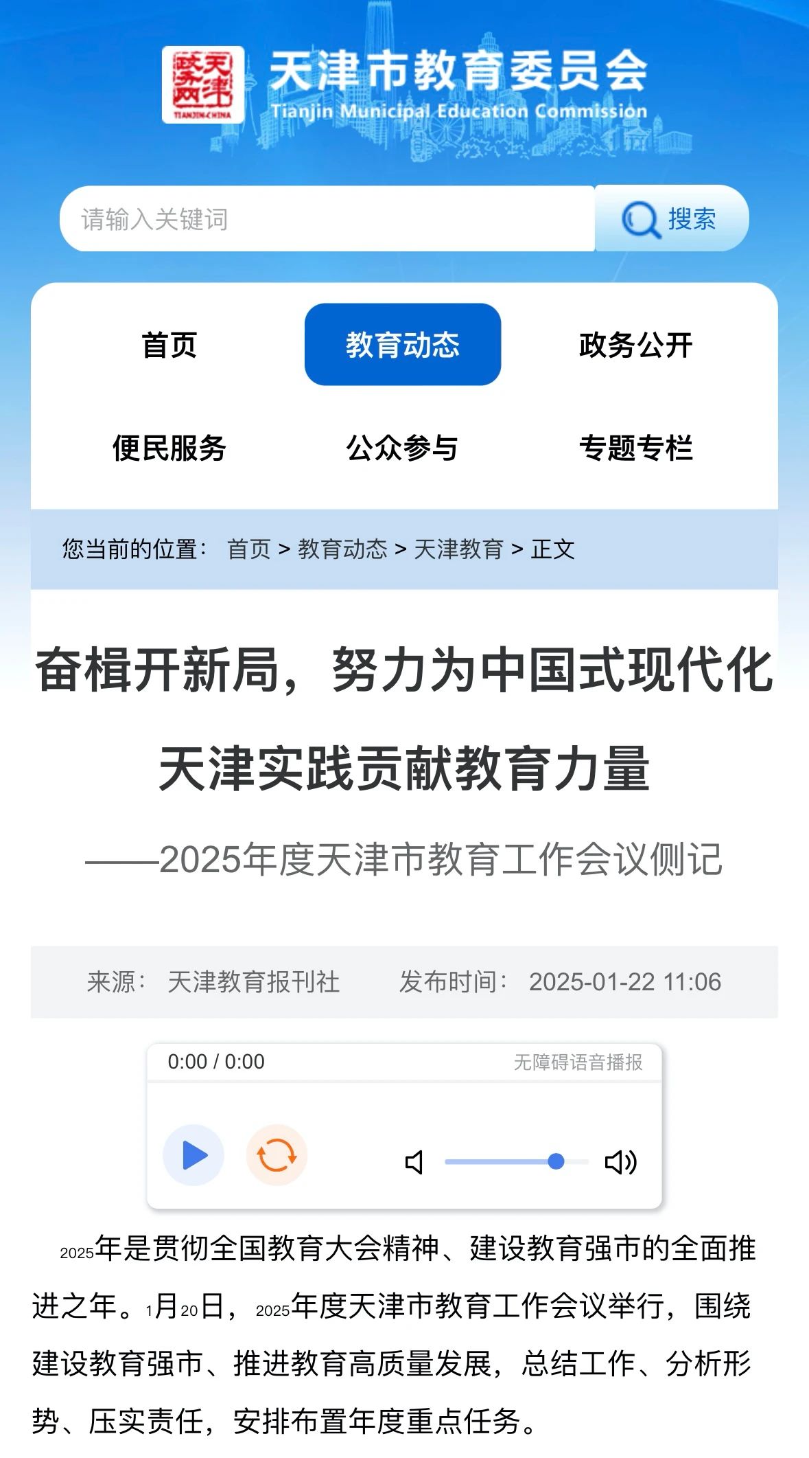 媒體關注 | 【天津政務網】奮楫開新局,努力為中國式現代化天津實踐貢獻教育力量——2025年度天津市教育工作會議側記