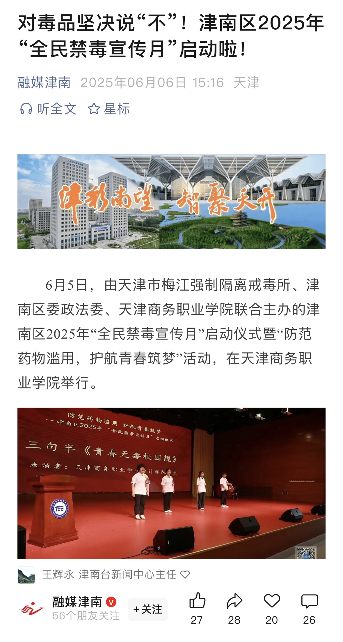媒體關注 | 【融媒津南】對毒品堅決說“不”!津南區2025年“全民禁毒宣傳月”啟動啦!
