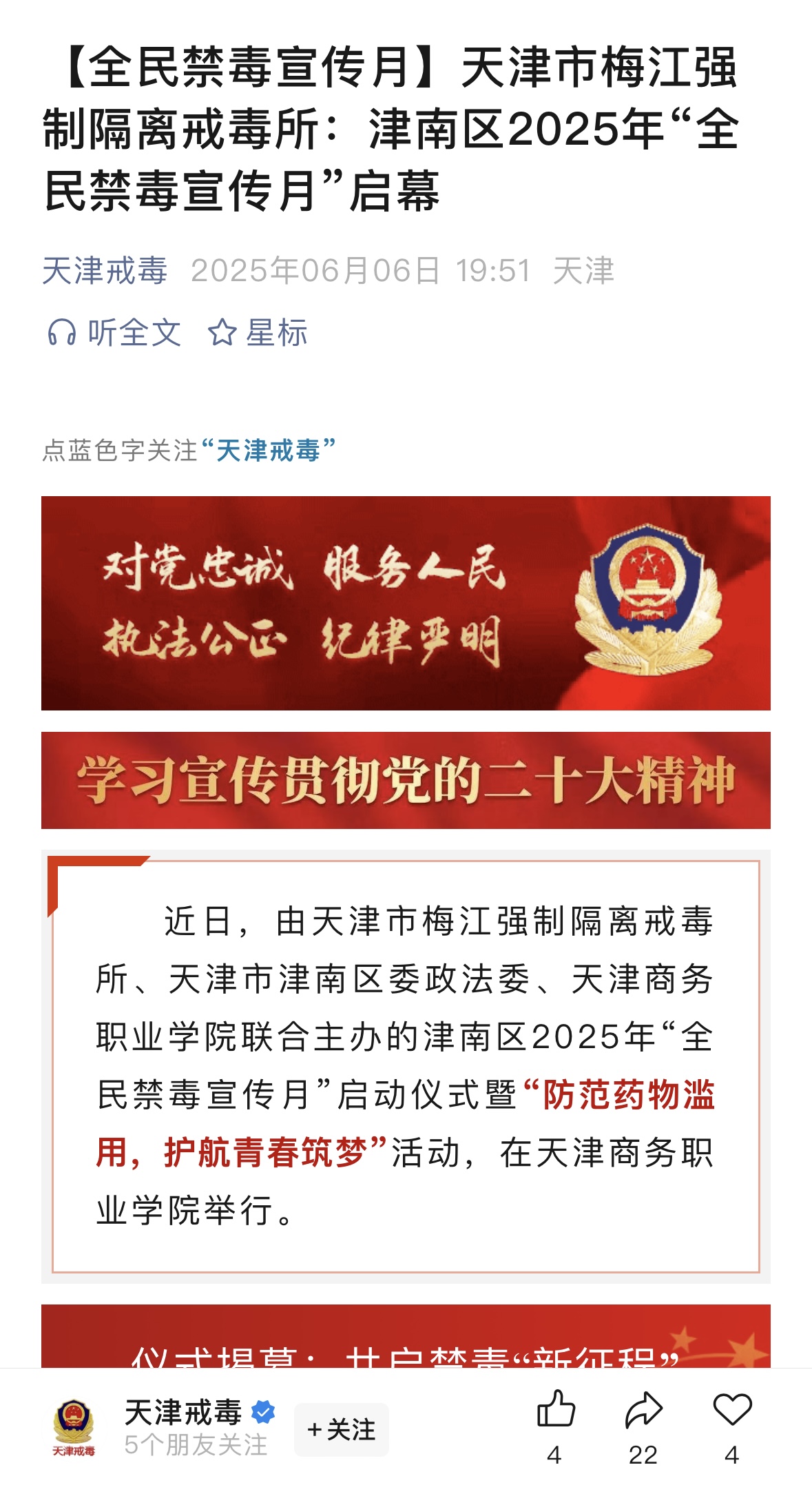 媒體關注 | 【天津戒毒】【全民禁毒宣傳月】天津市梅江強制隔離戒毒所:津南區2025年“全民禁毒宣傳月”啟幕