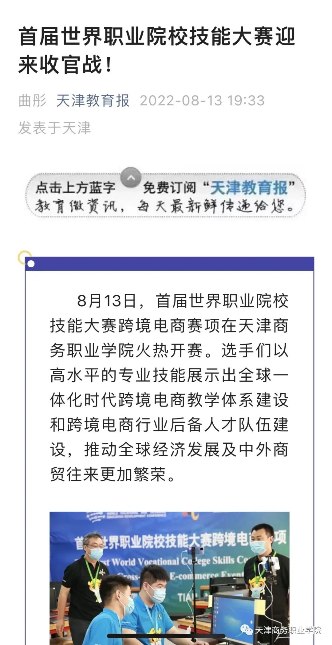 8月13日,首屆世界職業院校技能大賽跨境電商賽項在天津商務職業學院火熱開賽。選手們以高水平的專業技能展示出全球一體化時代跨境電商教學體系建設和跨境電商行業后備人才隊伍建設,推動全球經濟發展及中外商貿往來更加繁榮。