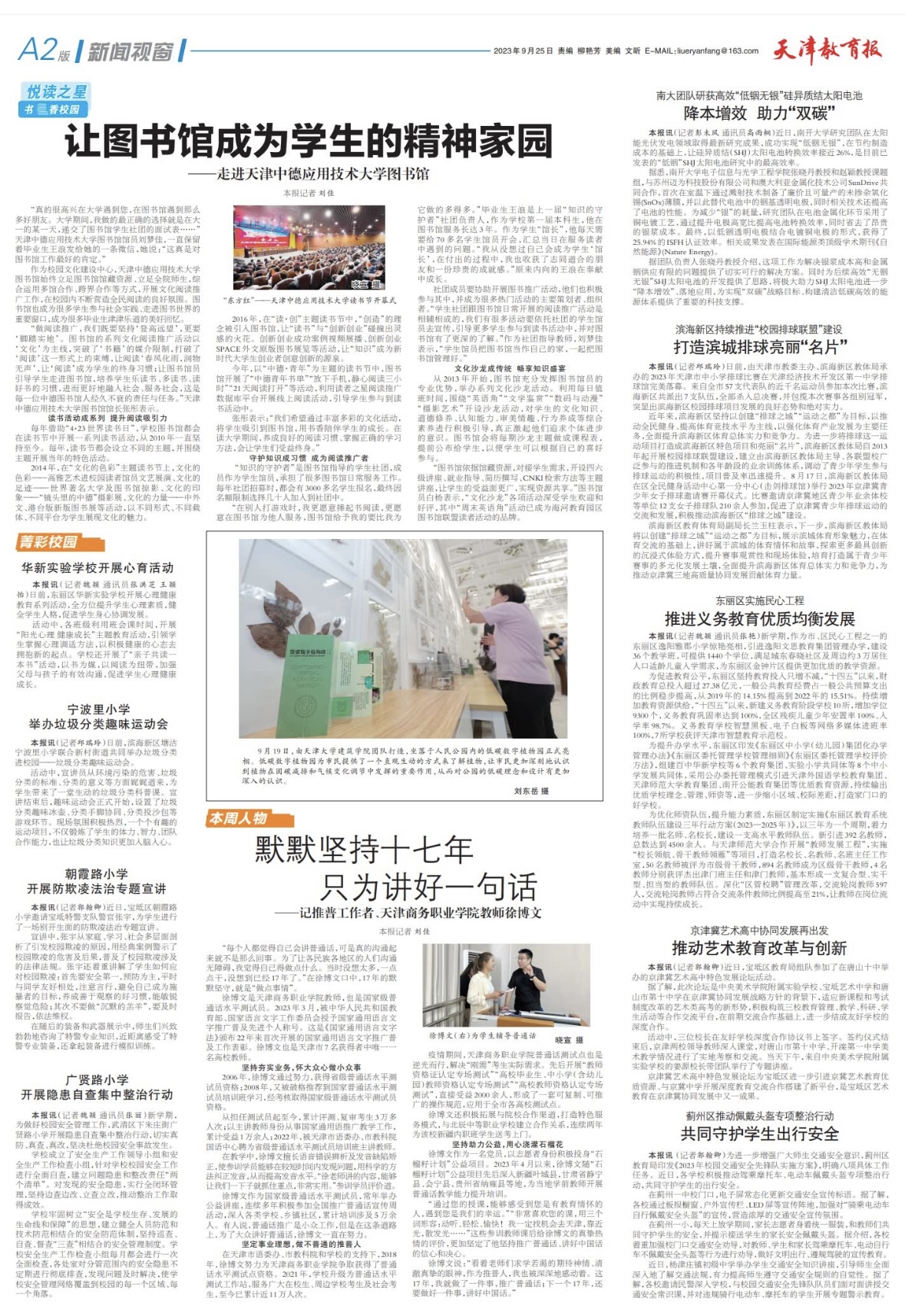 2023年9月25日,天津教育報A2版/新聞視窗/以“默默堅持十七年 只為講好一句話”為題,報道我校教師徐博文的推普故事。