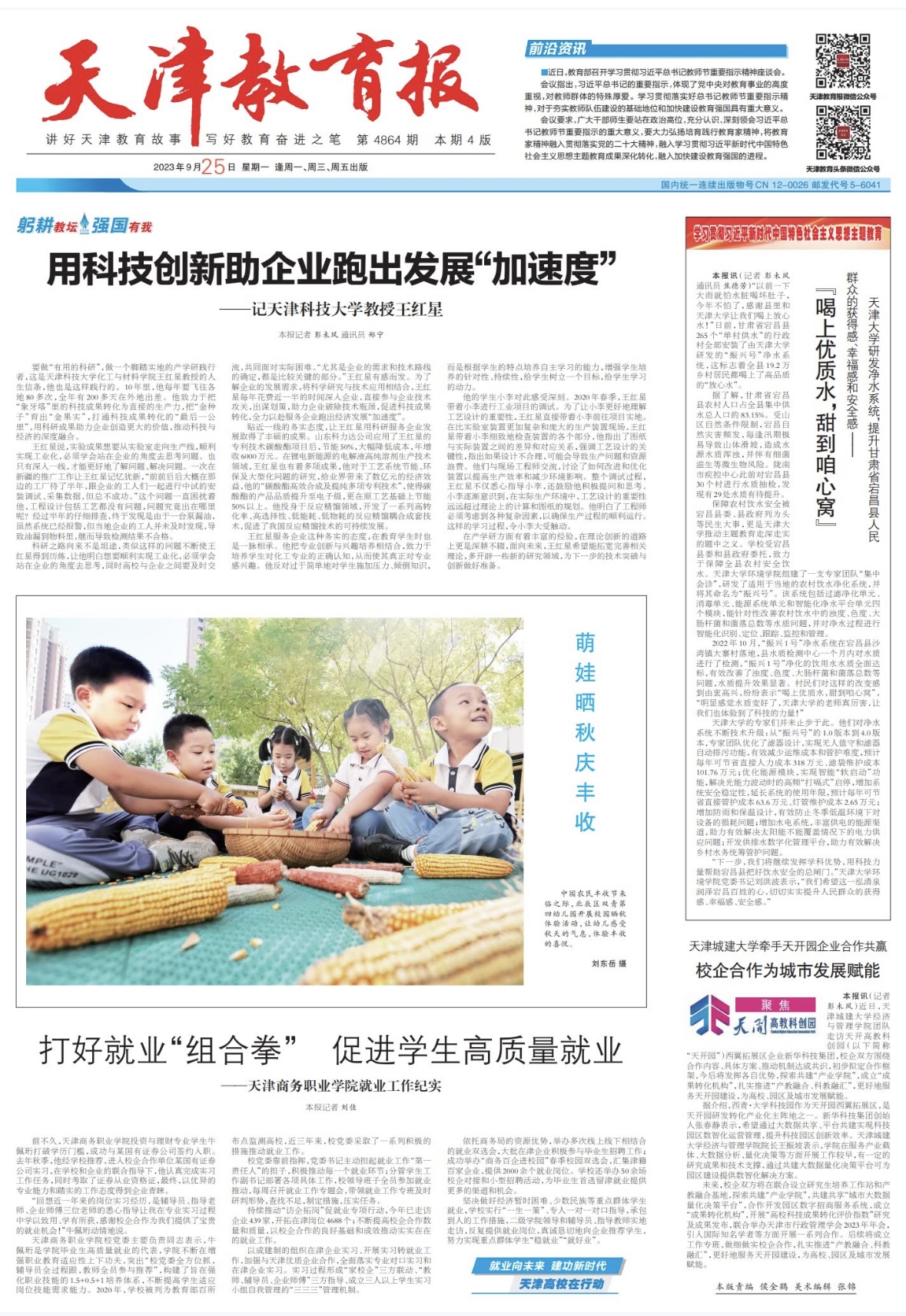 2023年9月25日,天津教育報頭版以“打好就業‘組合拳’ 促進學生高質量就業”為題,報道我校就業工作紀實。
