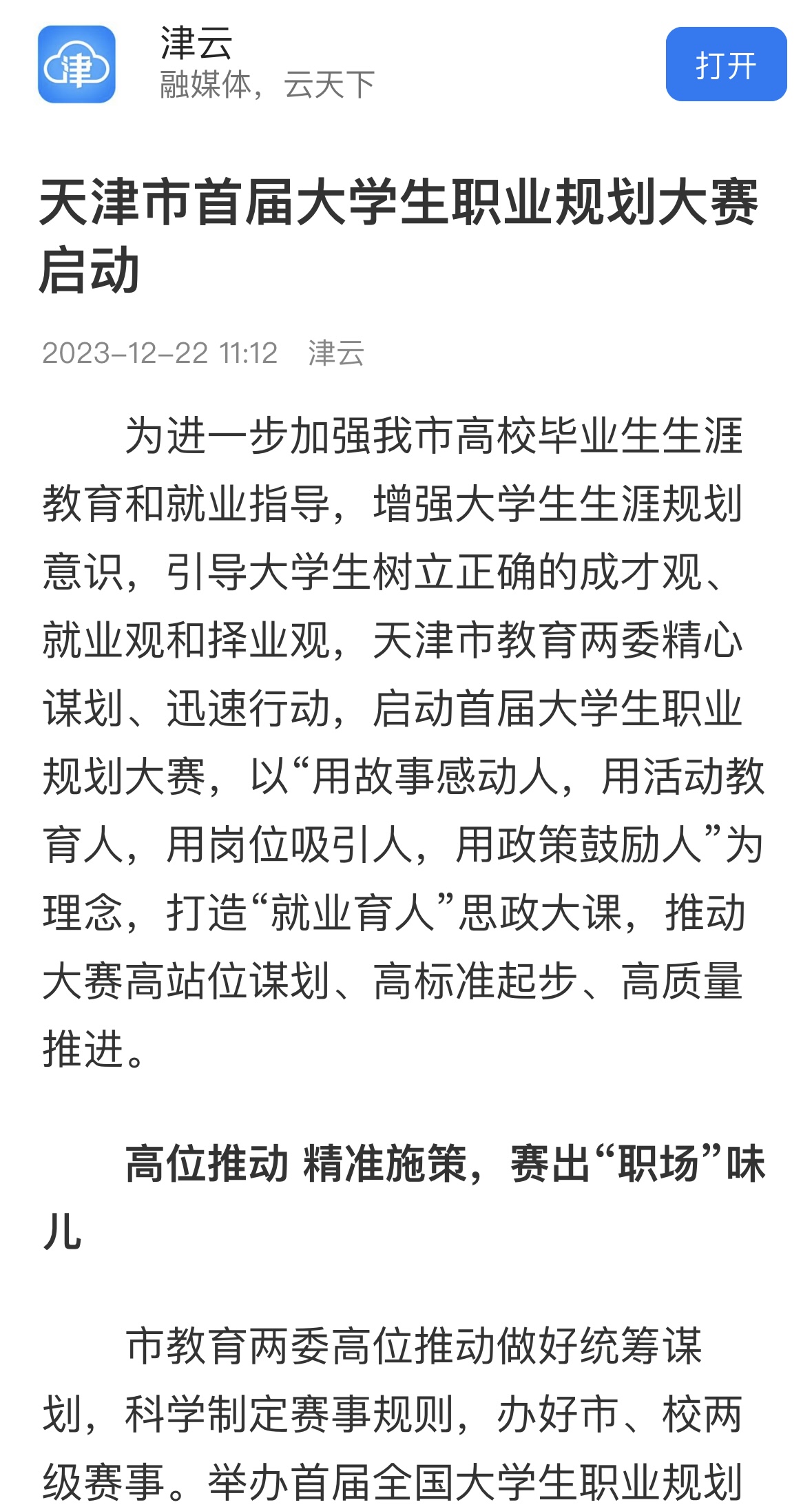 媒體關(guān)注 | 【津云】天津市首屆大學(xué)生職業(yè)規(guī)劃大賽啟動(dòng)