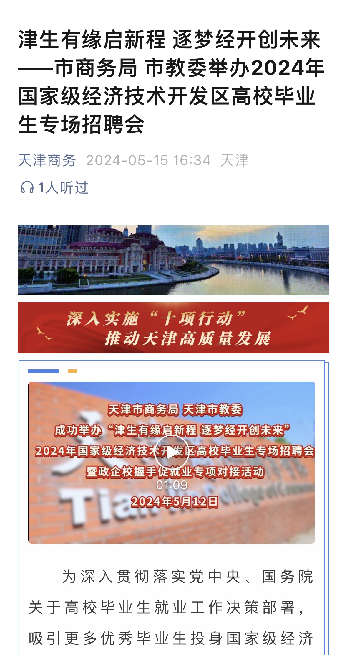 媒體關(guān)注 | 【天津商務(wù)微信公眾號】市商務(wù)局 市教委舉辦2024年國家級經(jīng)濟(jì)技術(shù)開發(fā)區(qū)高校畢業(yè)生專場招聘會