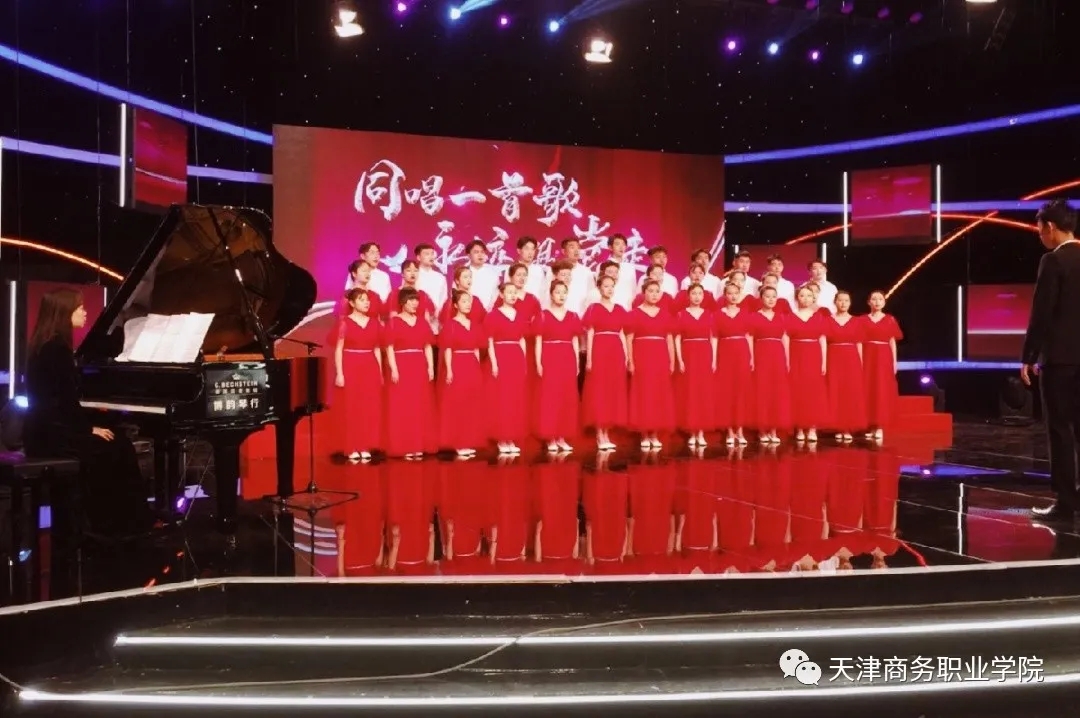為深入學習貫徹習近平新時代中國特色社會主義思想,教育引領我校青年學生在中國共產黨成立100周年以來取得的偉大成就中,“學史明理、學史增信、學史崇德、學史力行”,日前,由天津市委宣傳部、市文明辦組織的“紅心唱響新時代、昂首闊步新征程” 天津市慶祝中國共產黨成立100周年群眾歌詠電視展演活動在天津電視臺錄制完畢。我校青春之聲大學生合唱團35名團員參加此次活動的錄制,以創新的演繹形式、飽滿的精神狀態,表達了對黨的無限熱愛和深切祝福。
