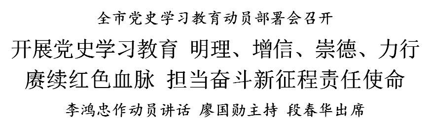 李鴻忠在講話中指出,習近平總書記在黨史學習教育動員大會上的重要講話,站在新時代黨和國家事業發展全局的高度,深刻闡述了開展黨史學習教育的重大意義、重點內容和工作要求,高屋建瓴、視野宏大、立意深遠,具有很強的政治感召力、思想引領力、歷史穿透力、實踐指導力,為我們開展好黨史學習教育指明了方向,提供了根本遵循。全市各級黨組織和廣大黨員、干部要切實把思想和行動高度統一到習近平總書記重要講話精神和黨中央決策部署上來,深入學習領會習近平總書記關于黨史的重要論述,高標準高質量扎實開展黨史學習教育,學史明理、學史增信、學史崇德、學史力行,做到學黨史、悟思想、辦實事、開新局,以優異成績迎接中國共產黨成立100周年。