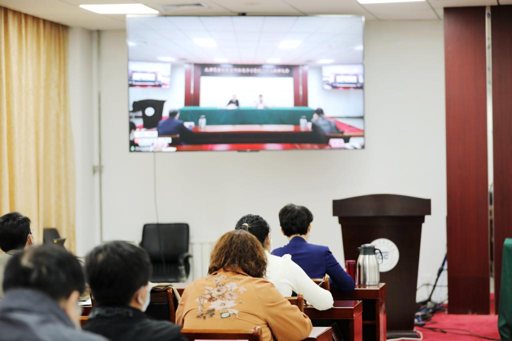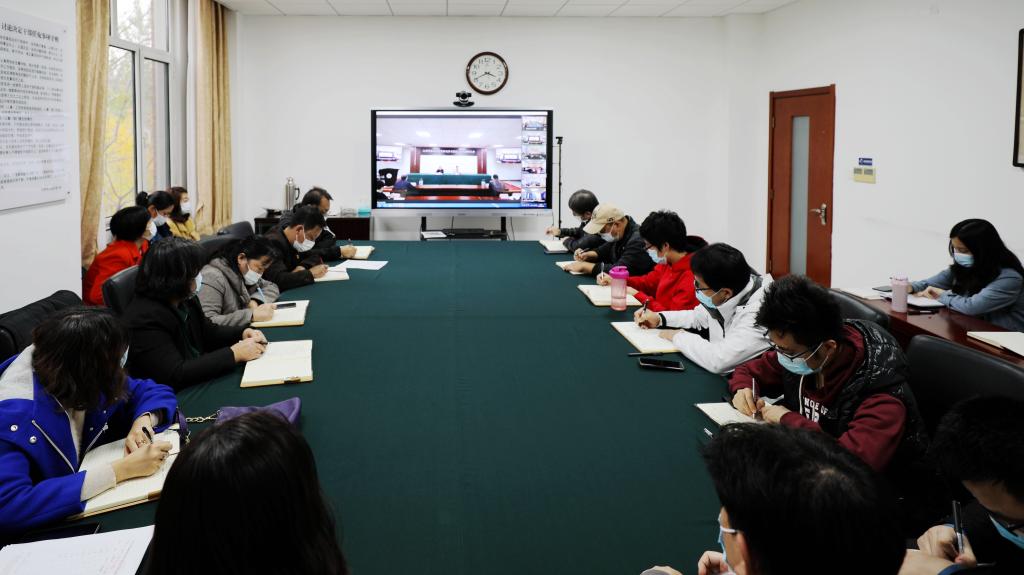 會議以視頻形式召開,主會場設在E座311室,在E座201、206、211室及各教學單位會議室設分會場。全體中層干部、全體黨員參加。