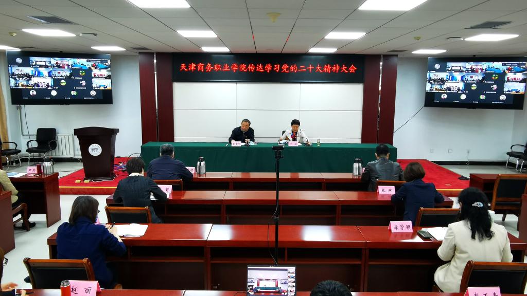 10月28日,天津商務職業學院召開傳達學習黨的二十大精神大會,黨委書記宮寶利,黨委副書記、校長劉欣出席會議并講話,強調學習宣傳貫徹黨的二十大精神,是當前和今后一個時期全黨全國的首要政治任務,學校各級黨組織、每名黨員干部要把思想統一到黨的二十大精神上來,把力量凝聚到實現黨的二十大確定的目標任務上來。