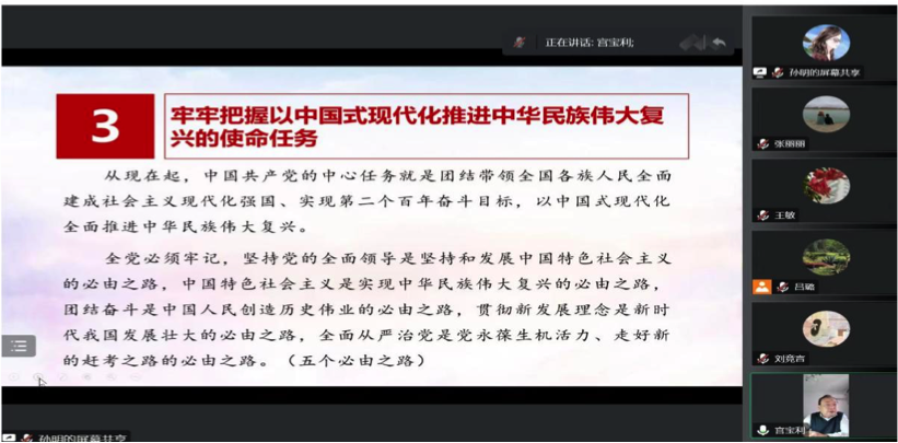 開班式及宣講會以騰訊會議形式在線上舉辦,各二級專業教學學院黨總支書記、副書記、全體輔導員,黨委學生工作部和團委全體人員參加了上述活動。