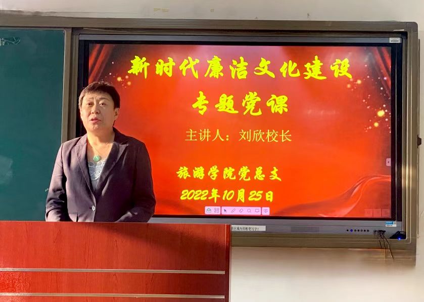 10月25日下午,學校黨委副書記、校長劉欣教授到旅游學院為全體黨員教職工講授了一堂生動、精彩的新時代廉潔文化建設專題黨課。