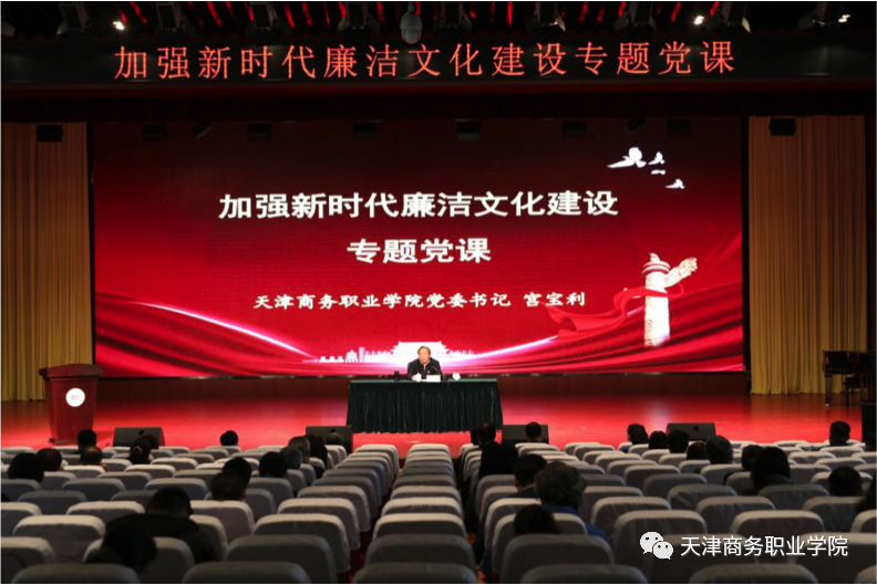 為嚴格落實市委《關于加強新時代廉潔文化建設的若干措施》及清廉天津建設的部署要求,持續深化全面從嚴治黨,一體推進不敢腐、不能腐、不想腐,學校于2022年5月13日召開加強新時代廉潔文化建設工作會議暨清廉學校建設推動會。校紀委書記周寶玲主持,學校領導班子成員、中層干部參會。