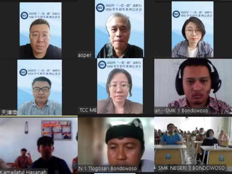為助推新時代友城工作,用友城聲音講好“商職”故事,學校依托天津市友協,積極拓展東盟地區優質國際學生資源。5月12日,我校與天津駐印度尼西亞東爪哇省交流中心合作,召開印度尼西亞專場線上招生宣講會,這是我校“一帶一路”商職行國際學生招生系列宣講會第三站。本次宣講會吸引了印度尼西亞東爪哇省文多禾梭地區中職院校的50多名印尼學生參會。