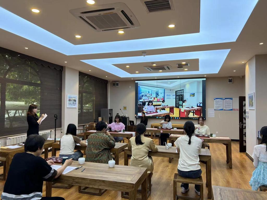 劉欣校長進入聯系班級茶藝2201班,句超老師講授的《茶藝展示與創編》課堂,與班級同學共同進行茶藝大賽模擬展示環節實踐教學,并對同學展示內容和環節進行針對性指導,劉欣校長贊揚了同學們在專業實踐教學中展現出的精益求精的工匠精神,對授課教師的課程設計和課程思政教學開展情況給予了高度的評價,同時鼓勵同學們發揮專業所長,力爭盡早成人成才。
