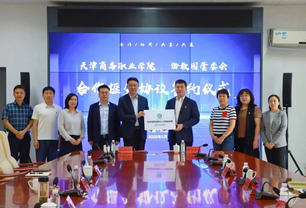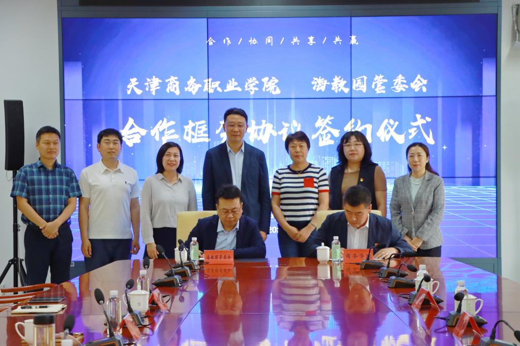 學校還與海教園管委會簽訂了校政企合作框架協議,薛彤副區長向學校頒發“天津市展教融合人才創新聯盟副秘書長單位”授牌。