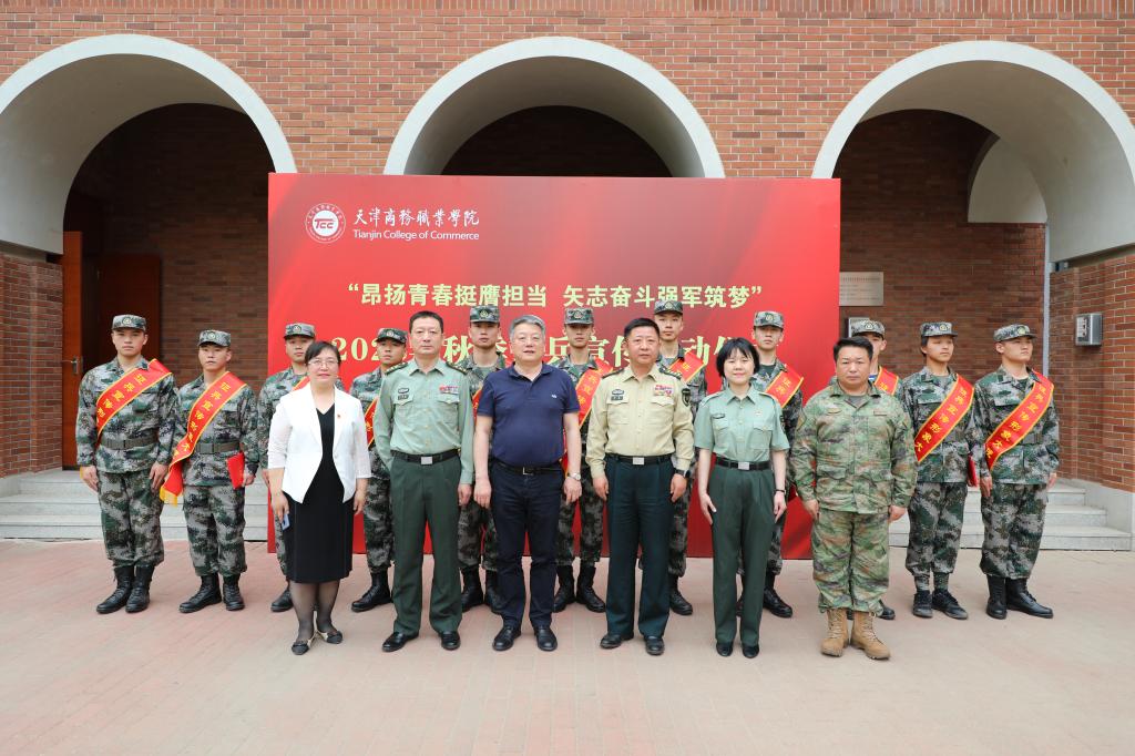 為認真落實教育部、中央軍委國防動員部關于高校征兵工作的部署要求,充分發揮高校征兵主陣地作用,扎實推進天津市征兵工作會議精神扎實落實,5月26日下午,河西區征兵工作領導小組副組長、區人武部政委邢勇、區人武部副部長李景春帶隊來到天津商務職業學院參加了學校“2023年秋季征兵宣傳啟動儀式”并開展了武裝工作調研走訪。校黨委副書記徐琤穎同志帶領學校武裝工作干部參加調研。