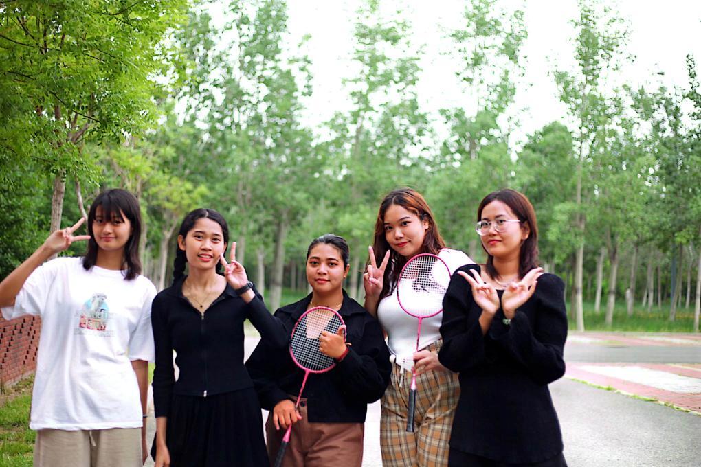 國際學(xué)生在校園內(nèi)打羽毛球