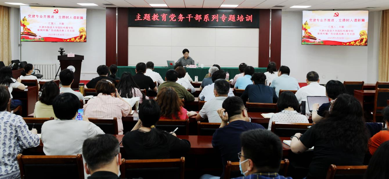 培訓邀請了天津市第一批新時代高校黨建“領航工程”“雙帶頭人”教師黨支部書記工作室負責人、全國第二批新時代高校黨建“雙創”樣板黨支部書記、天津外國語大學劉毅教授以《黨建專業齊推進,立德樹人譜新篇》為題進行授課,從黨建+專業建設深度融合、黨員凝心聚力激勵機制、課程思政育人模式、融媒型傳播渠道四個方面分享黨建工作樣板支部創建經驗,介紹黨支部特色化黨建工作體系。