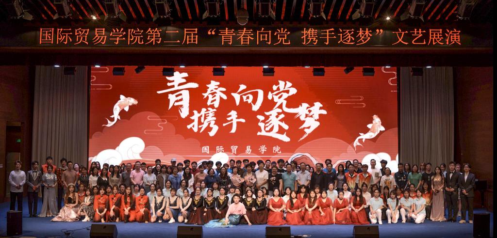 為深入貫徹黨的二十大精神,結合學習貫徹習近平新時代中國特色社會主義思想主題教育相關要求,聚焦大學校園文化建設,豐富廣大師生的校園文化生活,2023年5月30日,國際貿易學院舉辦第二屆“青春向黨,攜手逐夢”暨我愛我求學的城市文藝展演晚會。國際貿易學院領導班子、教職員工和學生代表近500人共同欣賞了精彩演出。