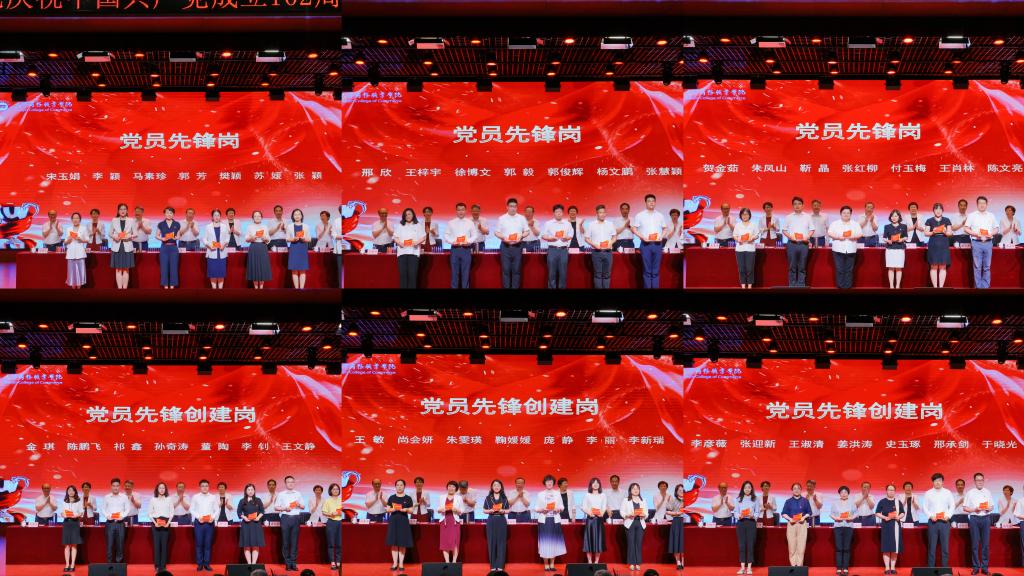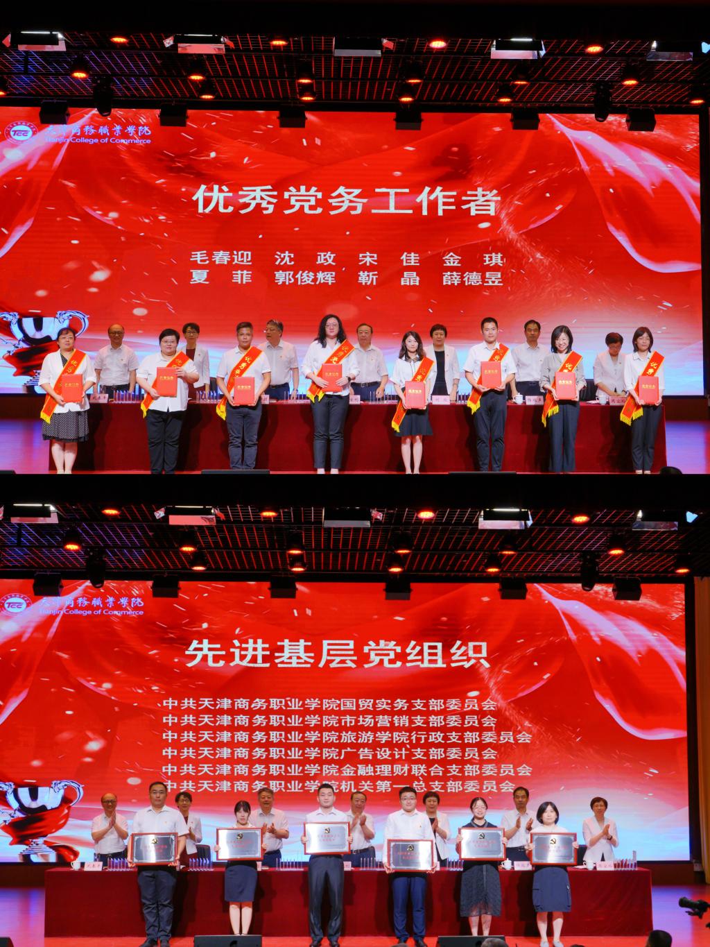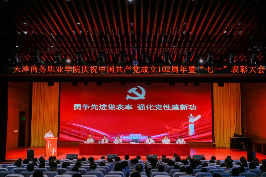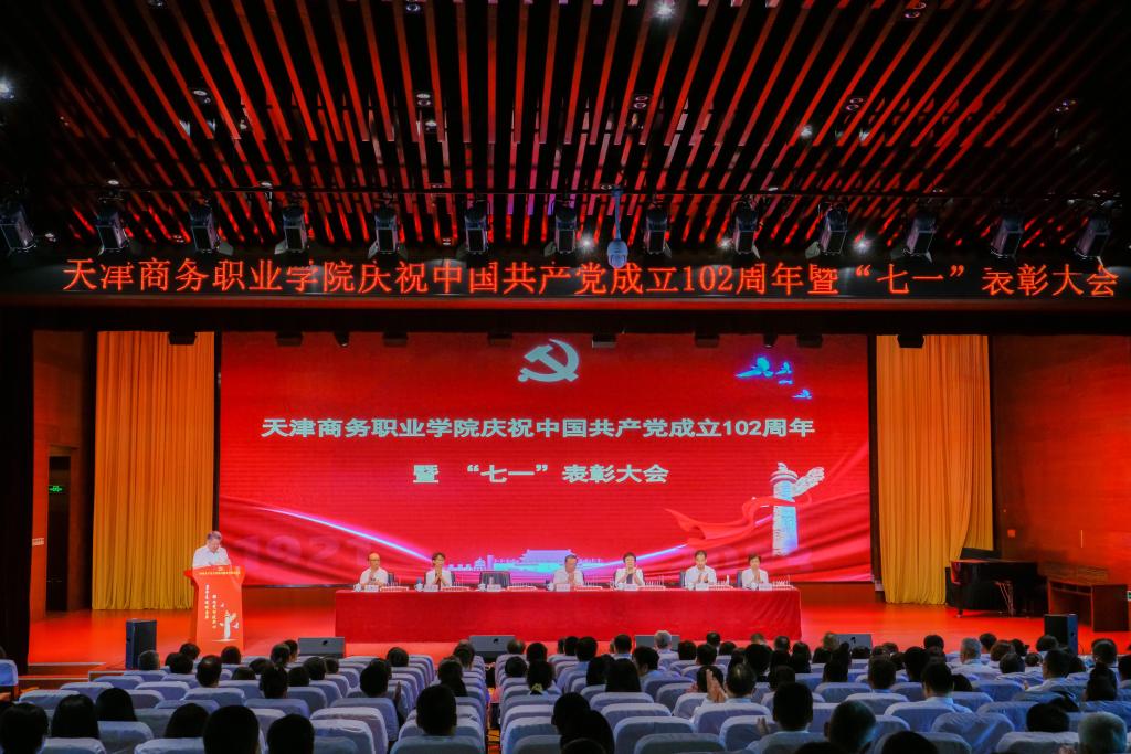 為深入推進學習貫徹習近平新時代中國特色社會主義思想主題教育,6月30日,天津商務職業學院召開“勇爭先進做表率 強化黨性建新功”慶祝中國共產黨成立102周年暨“七一”表彰大會,表彰一年來在教育教學、管理服務、后勤保障等各項工作中發揮戰斗堡壘作用的先進基層黨組織和發揮先鋒模范作用的優秀黨員、優秀黨務工作者,在全校形成比學趕超的濃厚氛圍,凝心聚力推動學校事業高質量發展。學校領導班子成員出席會議,光榮在黨50年老黨員、離退休黨員代表、學校關工委“五老”宣講團成員、在職全體黨員、非黨員處級干部代表400余人參加會議。會議由黨委副書記徐琤穎主持。