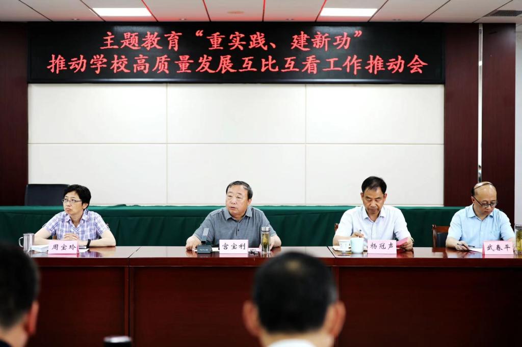 為高標準高質量開展學習貫徹習近平新時代中國特色社會主義思想主題教育,落實“學思想、強黨性、重實踐、建新功”的總要求,把習近平新時代中國特色社會主義思想轉化為指導實踐、推動工作的強大力量,努力在以學促干方面取得實實在在的成效,近日,學校召開各教學單位“重實踐、建新功”推動學校高質量發展互比互看工作推動會,會議由校黨委書記宮寶利同志主持,學校領導班子成員、各職能部門主要負責同志、各教學單位領導班子成員參會。