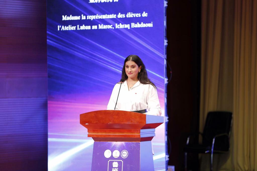 摩洛哥阿伊 阿薩尼1應用技術學院院長、來華代表團團長蘇阿德·洛菲女士,以及摩洛哥魯班工坊學歷生代表、首屆世界職業院校技能大賽跨境電商賽項金牌獲得者伊士拉克·巴達烏女士先后發言,高度肯定了摩洛哥“魯班工坊”對培訓摩方青年跨境電商技術技能起到的關鍵作用。