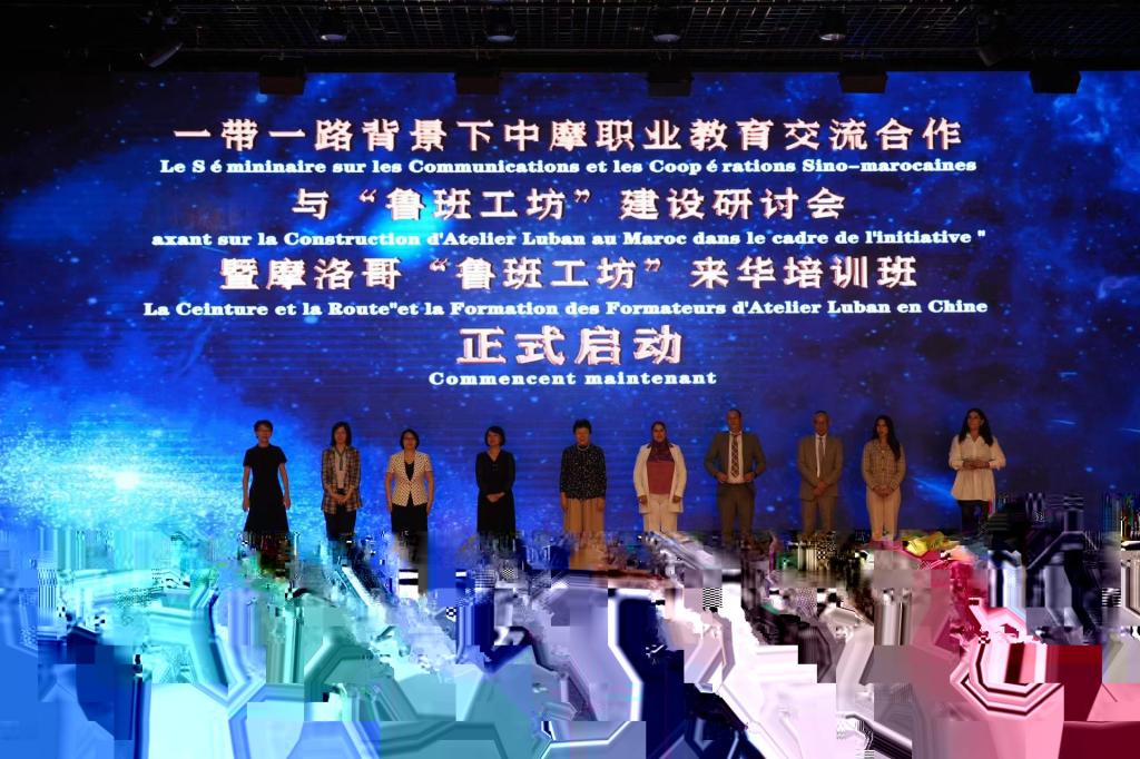 與會中外領導和嘉賓共同見證了摩洛哥“魯班工坊”來華培訓班的啟動儀式。