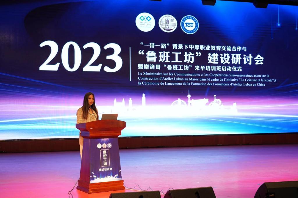 天津商務職業學院校長劉欣女士代表全體師生,感謝各方在百忙之中參加此次會議,自2021年12月3日學校與摩洛哥阿伊 阿薩尼 1 應用技術學院合作建設摩洛哥“魯班工坊”揭牌啟動運營以來,開設“中文+職業技能”系列線上公開課,開展兩期跨境電子商務職業技能培訓,已培訓260余人。今年以中摩建交65周年為契機,雙方正在謀劃摩洛哥“魯班工坊”三期建設,希望通過此次線下交流、培訓,推動成立首個摩洛哥“魯班工坊”學歷生訂單班,進一步探索職業教育助力“一帶一路”建設的新途徑和新舉措,為兩國青年鋪設成才之路、就業之路、幸福之路,推動雙方“深化友誼、增進互信、擴大合作、促進發展”,共同將摩洛哥“魯班工坊”打造成中摩兩國職業教育合作的亮麗名片。