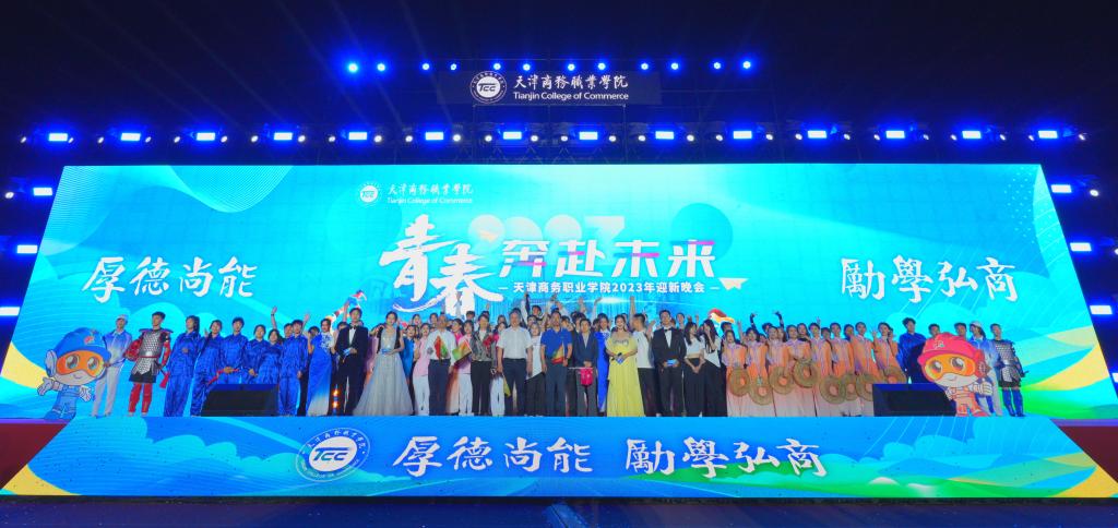 當晚,盛大的迎新晚會在學校運動場舉辦。晴朗的夜空下燈光閃爍,多才多藝的商職師生同天津音樂學院、天津理工大學的特邀參演人員一同載歌載舞,共同為觀演的教職員工和商職新生呈現了精彩熱烈的視聽盛宴,激勵全體商職人在新學期以良好的精神面貌奮發向前。