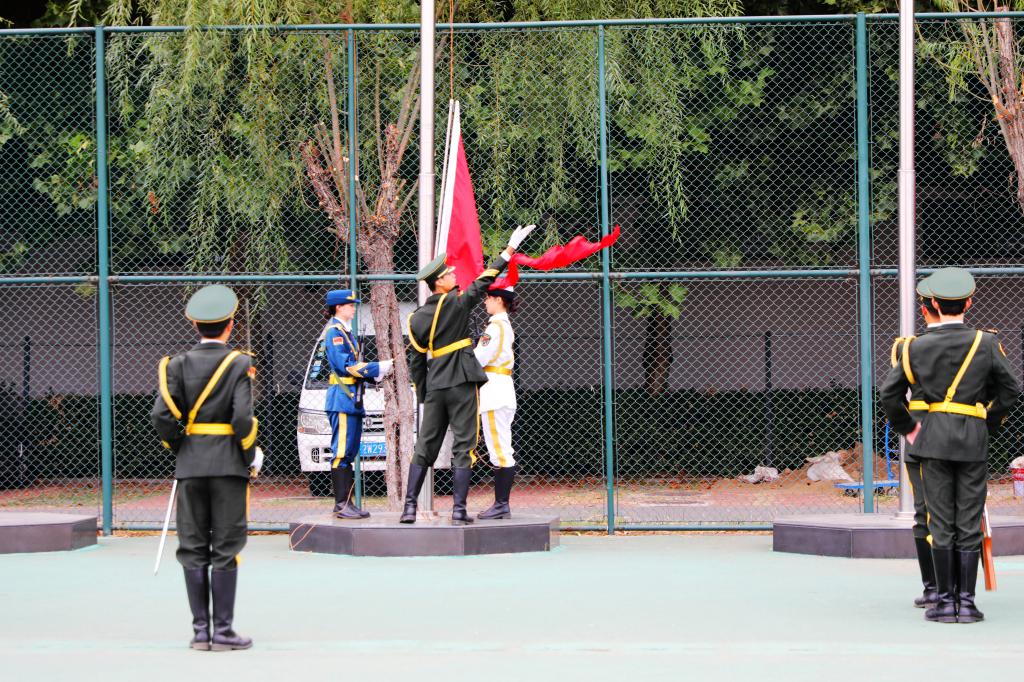 在儀式的開始,國旗護衛隊的同學們邁著整齊劃一、鏗鏘有力的步伐,護送著五星紅旗、正步走向旗桿。全體師生面向國旗肅立致禮,隨著激昂的《義勇軍進行曲》旋律響起,師生們注視著五星紅旗冉冉升起。迎風飄揚的紅旗,激勵全校師生以煥然一新的面貌、昂揚奮進的姿態,開啟新學年、新征程。