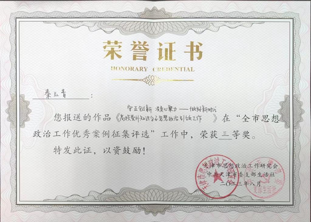 其中,我校報送的兩篇作品在“全市思想政治工作優秀案例征集評選”中榮獲三等獎和優秀獎。