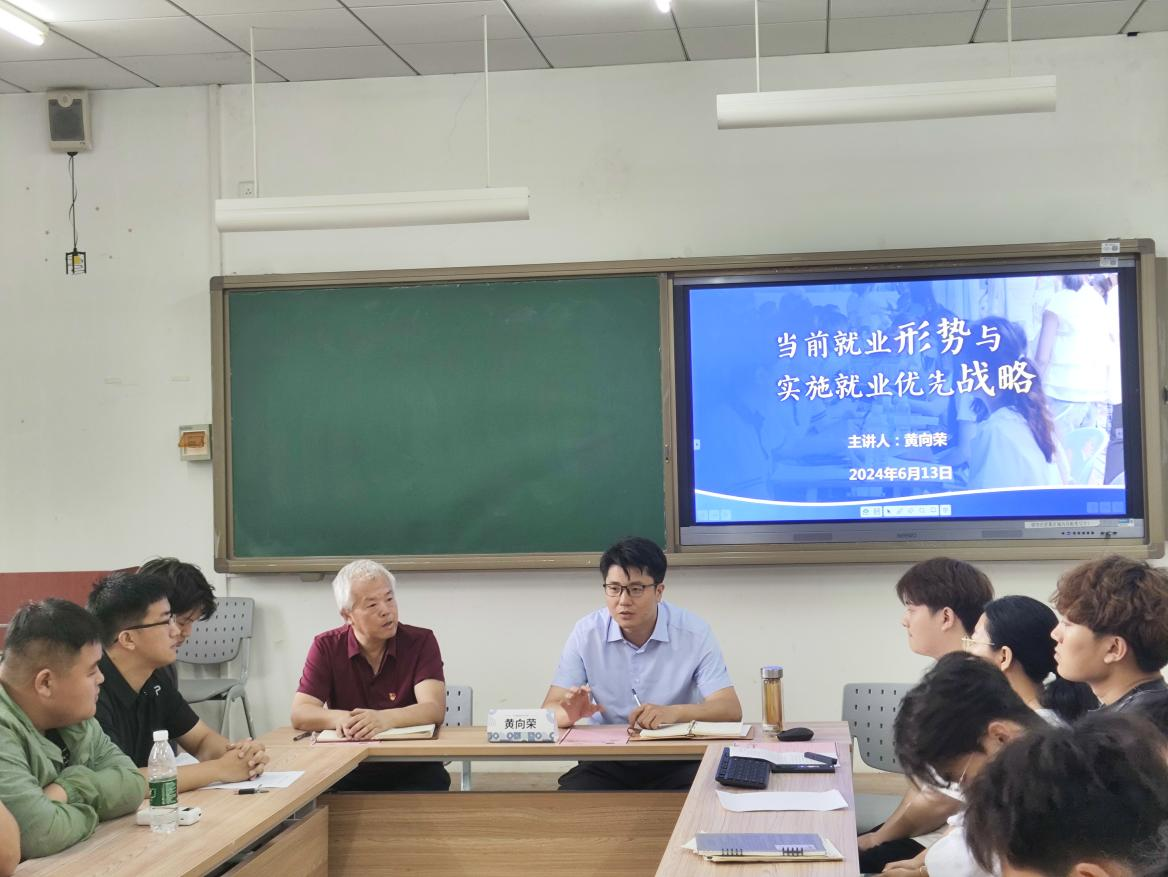 黃向榮副書記為廣告學(xué)院的同學(xué)們講授了《當(dāng)前就業(yè)形勢與實(shí)施就業(yè)優(yōu)先戰(zhàn)略》的形勢政策課,分析當(dāng)前就業(yè)形勢與就業(yè)環(huán)境,希望同學(xué)們深入了解當(dāng)前就業(yè)形勢,明確自己的職業(yè)興趣和發(fā)展方向,找到自己最擅長和最感興趣的領(lǐng)域;鼓勵(lì)同學(xué)們學(xué)好本領(lǐng),為將來高質(zhì)量充分就業(yè)打好基礎(chǔ);并在課后的交流座談會(huì)上向同學(xué)們征求學(xué)校教育教學(xué)、管理服務(wù)、個(gè)人發(fā)展、食堂以及公寓等方面的意見。