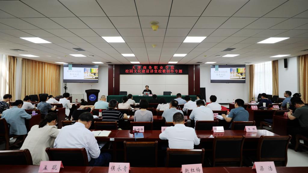 天津商務職業學院即將開啟迎接建校70周年的華章序曲,結合校園文化建設主題,6月18日下午,由學校黨委宣傳部主辦的校園文化建設講堂-校歌創作專題在行政樓311成功舉辦,現場邀請了天津市河西區文化館書記、館長李孝輝老師為全體中層干部進行校歌創作專題講座。