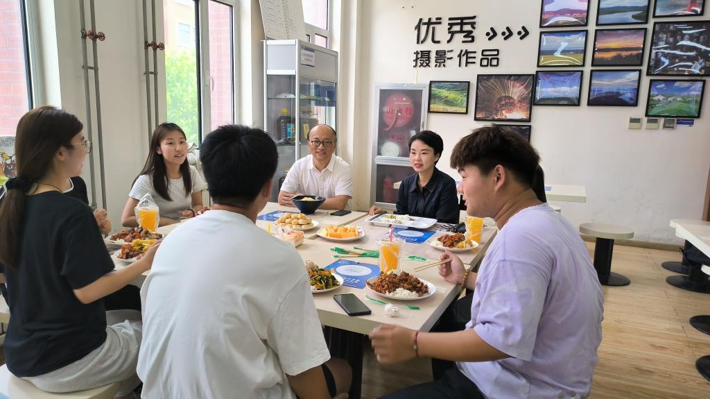 午餐時間,武春平副校長和學生一同來到餐廳共進午餐,詳細詢問了同學們在校這一年的學習情況、生活情況及個人以后的發(fā)展規(guī)劃等,同學們敞開心扉,暢談心聲。武春平副校長鼓勵同學們要扎實學好專業(yè)知識,珍惜在校時光,積極參加各項活動,培養(yǎng)和發(fā)展自己的興趣愛好,不斷豐富自己;提醒同學們多參加體育活動,加強身體鍛煉,提高身體素質;加強意志磨煉,堅定理想信念,堅定不移聽黨話、跟黨走,爭做有理想、敢擔當、能吃苦、肯奮斗的新時代好青年,既志存高遠又腳踏實地,切實肩負起黨和人民賦予的歷史重任,奮力書寫為中國式現代化挺膺擔當的青春篇章。