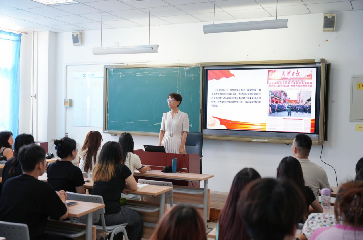 尹秀琴副校長以“牢記殷殷囑托 書寫天津發(fā)展美好華章”為題為同學們講授了一堂精彩的形勢政策課,重點圍繞習近平總書記視察天津重要講話精神和對天津工作提出的“四個善作善成”重要要求進行講授,勉勵同學們牢記習近平總書記殷切囑托,踐行“四個善作善成”重要要求,在未來的學習和實習工作中錘煉本領(lǐng)、提高能力,把個人理想融入國家發(fā)展的大格局中,為推進強國建設、?族復興偉業(yè)貢獻?春力量。