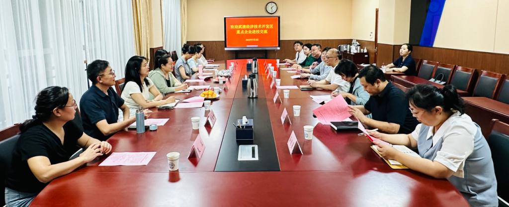 武春平副校長代表學校對武清開發區及企業一行的到來表示熱烈歡迎,介紹了學校的專業建設、師資隊伍、人才培養等情況,并表示學校堅持促進畢業生高質量就業,希望校企雙方建立良好的溝通機制,加強在學生培養、實習實踐、畢業生就業等方面的交流,維持長期穩定合作關系。劉偉書記介紹了開發區建設發展成就、區位發展優勢、人才政策、人才招聘需求等情況,希望通過與學校的深入合作,共同打造人才培養的新模式,為企業輸送更多優秀人才,助力武清經濟技術開發區高質量發展。學校教務處介紹了學生實習的崗位需求,黨委學生工作部介紹了學校促進學生高質量充分就業的舉措,各企業負責人介紹了企業發展情況、招聘崗位需求條件、員工培養計劃等。