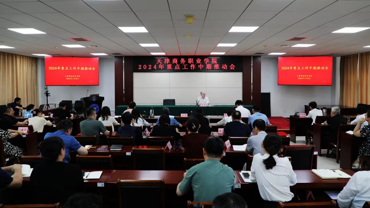 為全面貫徹落實黨的二十大精神及習近平總書記視察天津重要講話精神,總結成績、看到差距、明確目標、增進共識、推動落實,7月18日,天津商務職業學院召開 2024年重點工作中期推動會。學校領導班子成員、全體中層干部參會,會議由學校黨委副書記黃向榮主持。