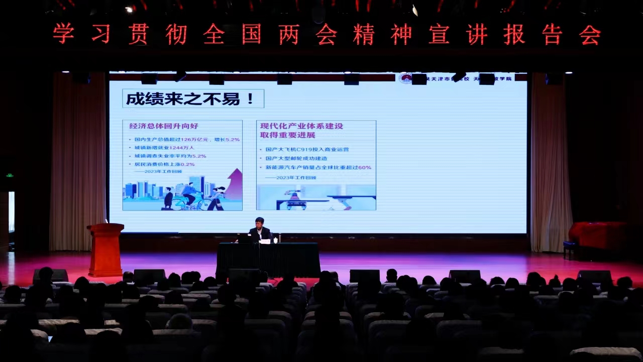 近日,中華人民共和國第十四屆全國人民代表大會第二次會議和中國人民政治協(xié)商會議第十四屆全國委員會第二次會議在北京圓滿閉幕。為深入學習貫徹習近平總書記在全國兩會期間的重要講話和全國兩會精神,4月2日下午,天津商務職業(yè)學院邀請中共天津市委黨校政治學與統(tǒng)戰(zhàn)理論教研部主任張亞勇作全國兩會精神解讀。校黨委書記馬雷主持,校院兩級理論學習中心組、全體中層干部、全體黨員參加報告會。
