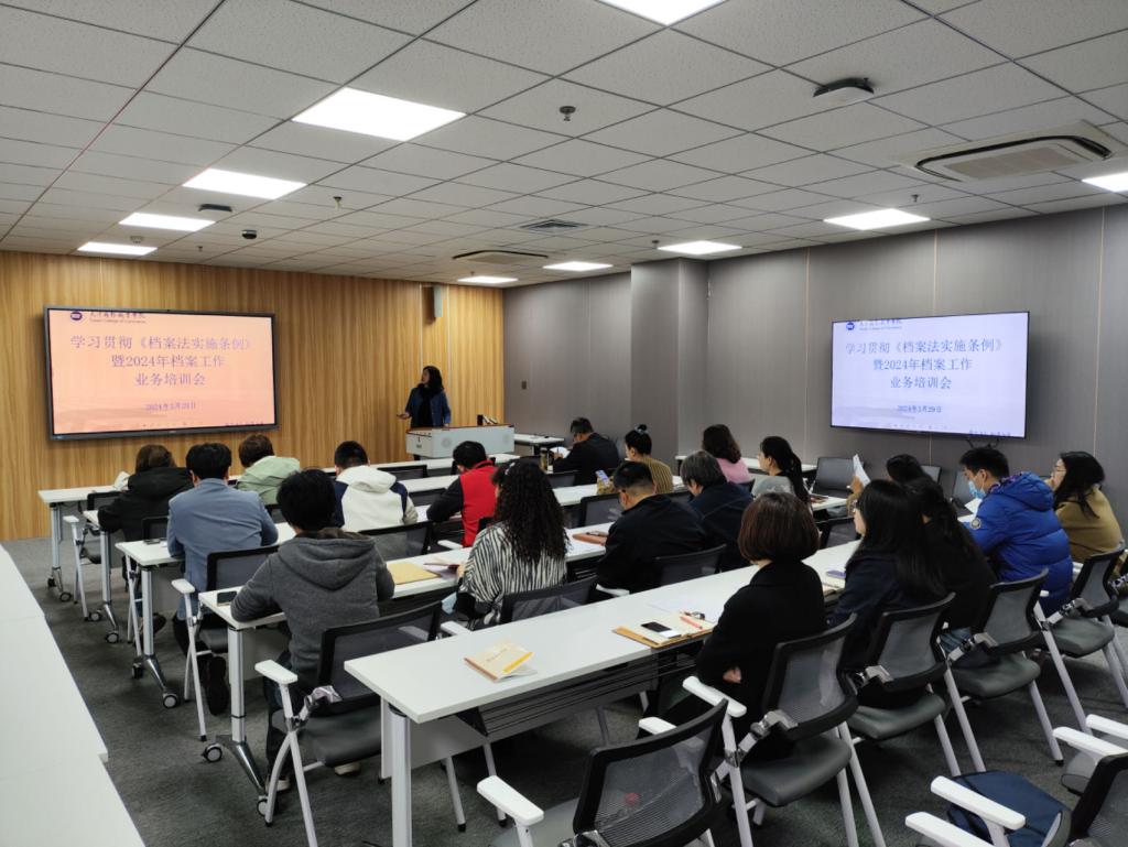 為深入學習貫徹習近平總書記視察天津重要講話精神和對檔案工作的重要指示批示精神,學習宣傳貫徹《中華人民共和國檔案法實施條例》(以下簡稱《實施條例》),進一步增強全體干部職工的檔案法規意識,加強和規范檔案工作,近日,學校檔案館精心組織開展學習貫徹《實施條例》暨學校2024年檔案工作業務培訓會,各部門兼職檔案員及部分立卷人近40人參加了會議。