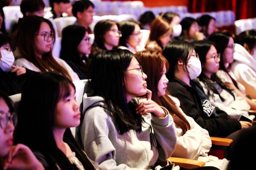 電影故事情節內容豐富、感人至深,讓現場師生深受觸動和啟發。馬克思主義學院院長張妍妍表示,影片深度契合了習近平總書記2019年3月18日在學校思想政治理論課教師座談會上的重要講話精神,真實刻畫了新時代青年思政課教師成長的心路歷程,特別能夠引起青年思政課教師的情感共鳴。并且影片將教師的成長與新時代學生筑夢青春的人生理想有機融合,為全社會了解思政課提供了一個新的視角,也彰顯了思政課教師與思政課教學的重要性。相信影片的上映,將更加激勵思政課教師投身培育時代新人這一神圣的職業之中。